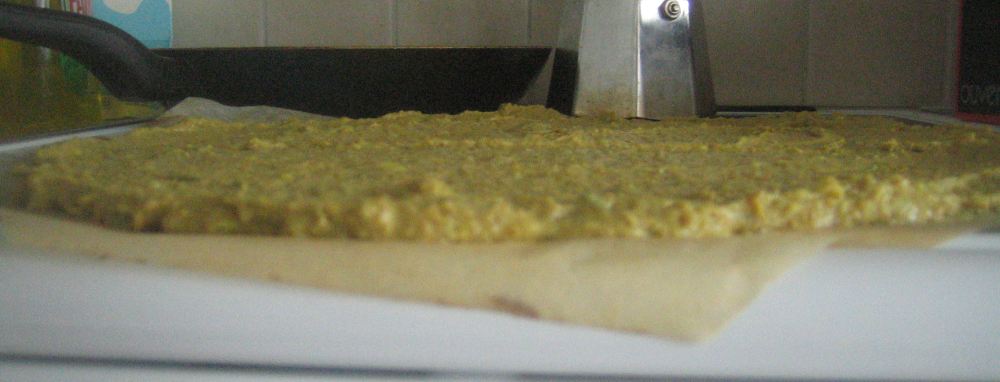 - Tehdään taikinasta levyn kokoinen setti ja kaaviloidaan taikina tasaiseksi.